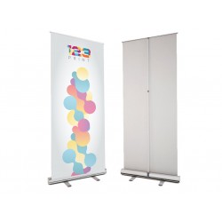 Expositor Roll Up con lona impresa a todo color de formato 100x200 cm. Incluye funda para transporte. Ideales para promocionarse en stand y eventos.